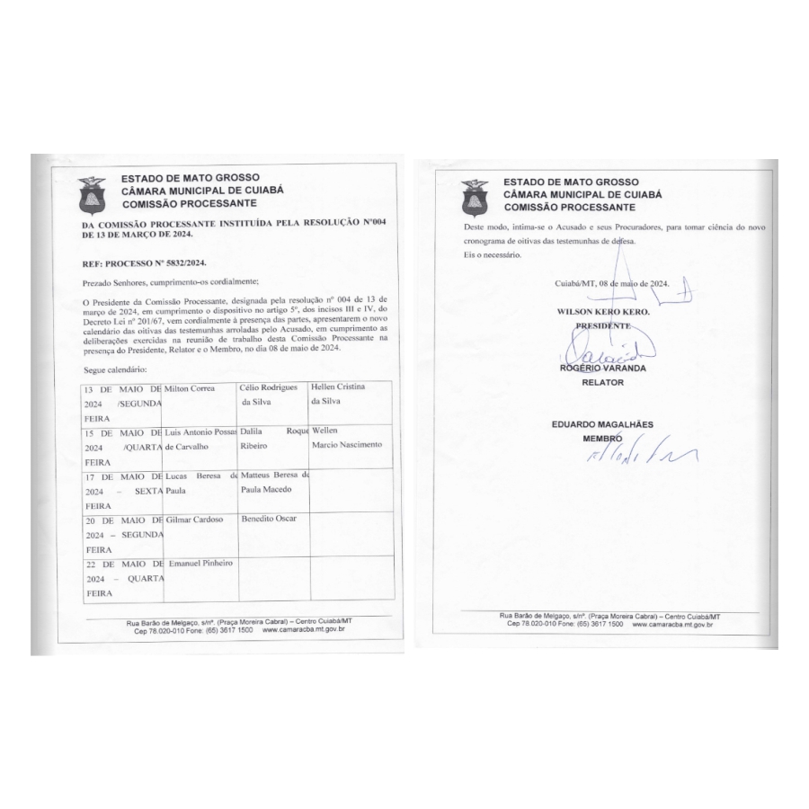 Para está segunda-feira (13),  estão marcadas as oitivas do ex-secretário-adjunto de Saúde de Cuiabá, Milton Corrêa da Costa Neto, o ex-secretário de Saúde Célio Rodrigues e a servidora da Saúde Hellen Cristina da Silva.